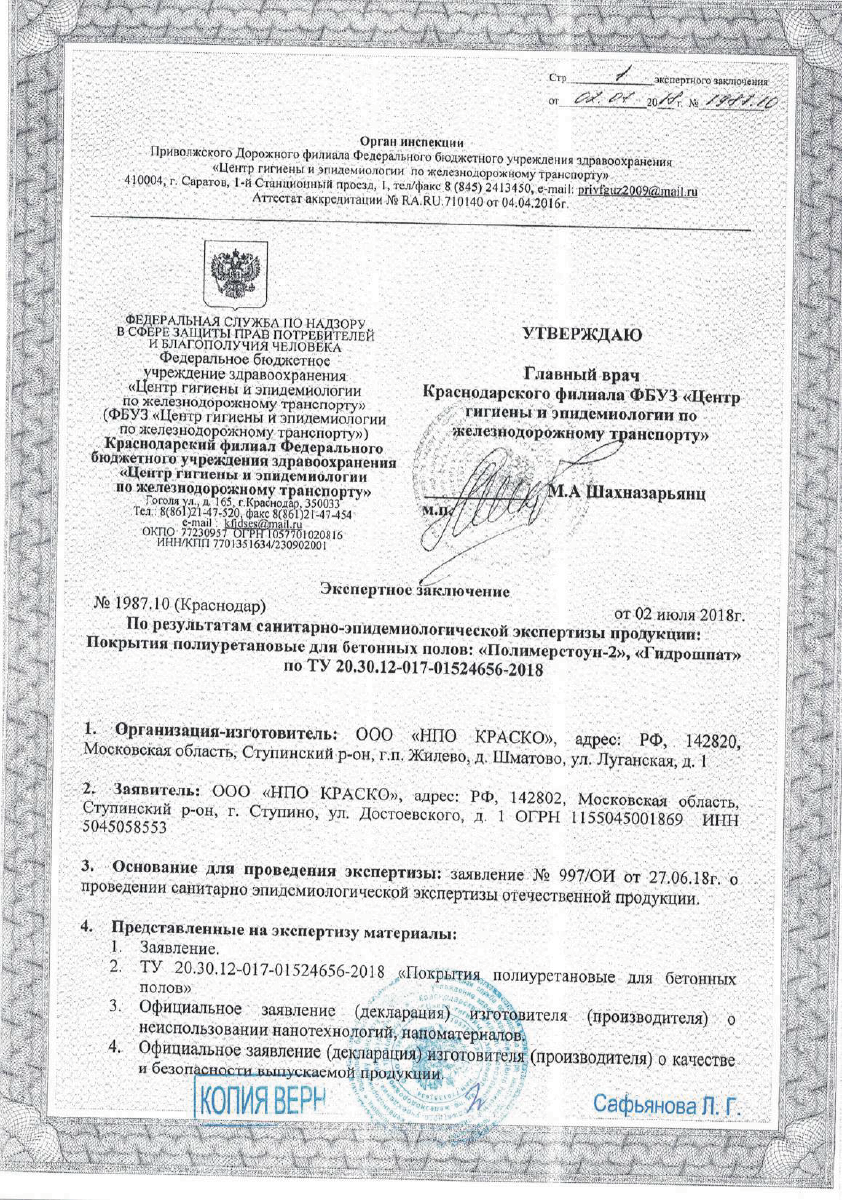 Наша компания занимается производством электрического оборудования. Подыскивали в интернете бесшовный полиуретановый наливной пол, для небольшого помещения на нашем производстве. После поиска нашли сайт вашей компании и после консультации, свой выбор остановили на Полимерстоун 2 RAL 7040. Работы проводили силами наемной строительной бригады, которая уже работала с аналогичными покрытиями и имела соответствующий опыт и инструмент.